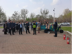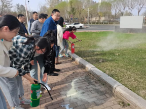 在灭火实操演练环节学保卫处防火科吴志衡系统地向教师讲解并示范了墙壁消火栓、各类型灭火器等的正确使用方法,指导大家正确扑救初期火灾,确保灾害来临时把损失降到最低,同时对日常中应注意的消防安全知识进行了宣传讲解。