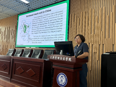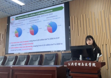 william威廉中文研究生马梦琪作了《Analysis of the Spatial and temporal evolution of Maize-soybean cropping patterns and its link with climate warming in Northeast China between 2000 and 2020(2000—2020年东北地区玉米大豆种植格局时空演变及其与气候变暖的联系)》的报告,分析了全球气候变化对农业生产的影响以及作物种植格局与生物气候因素变化之间的关系,为东北地区农业种植制度的优化提供了建议。