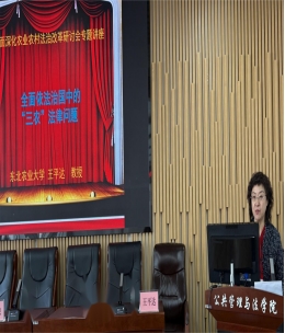 在农业农村法治研究会第二次会员代表大会后的“全面深化农业农村法治领域改革”研讨会上,新一届研究会会长、我院法学系王平达教授作了《全面依法治国背景下“三农”法律问题研究》主题报告,法学系支部书记陈杉副教授作了《农业农村法治RCEP视域下我国农产品营商环境法治化建设研究》主题报告,省农业农村厅农村社会事业促进处关贵林处长作了《发挥优势补齐短板 推进龙江农业高质量发展》主题报告,哈尔滨市阿城区大米协会王连涛会长以《农村法律实务问题探索》为题作交流发言。研讨会既有政府政策法规部门的解读,又有农业法学理论专家讲解,还有来自以农村基层新型职业农民代表提出的急需解决的农村法律实务问题,理论与实践相碰撞,产生很多解决实际问题的研究成果。