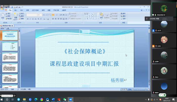 杨秀丽老师的《社会保障概论》明确“自带思政”的课程特色,从社会保障事关民生的本质出发,联系脱贫攻坚、抗击疫情等社会热点,激发学生为人民服务的责任感。
