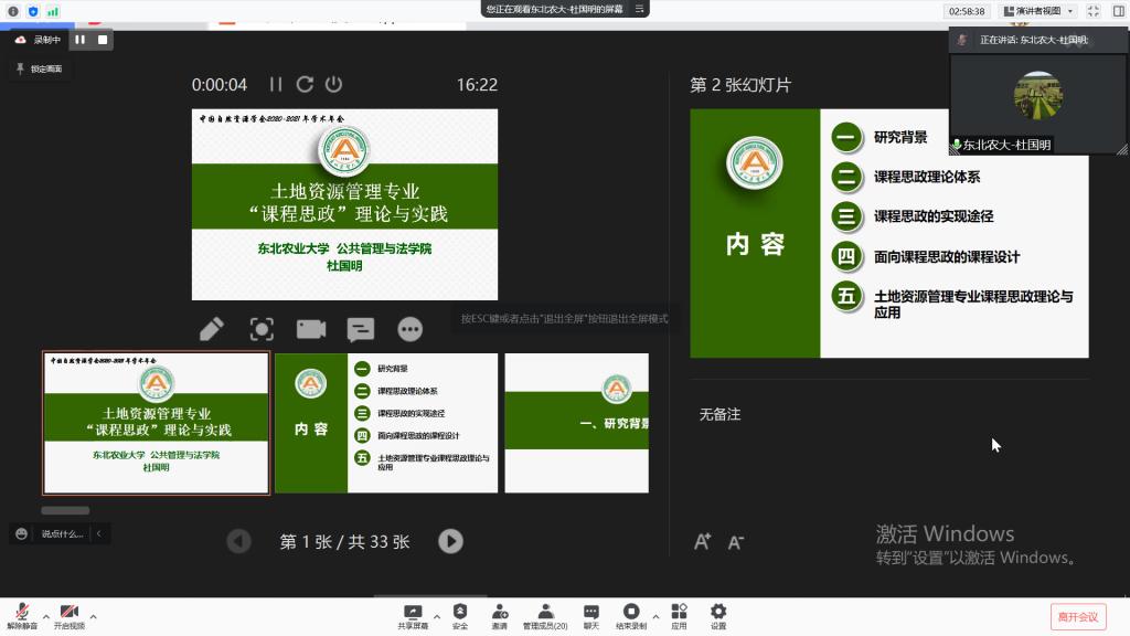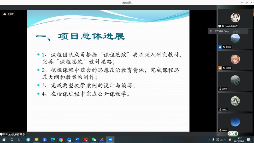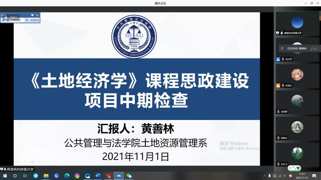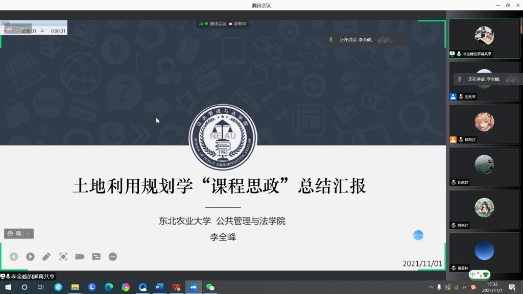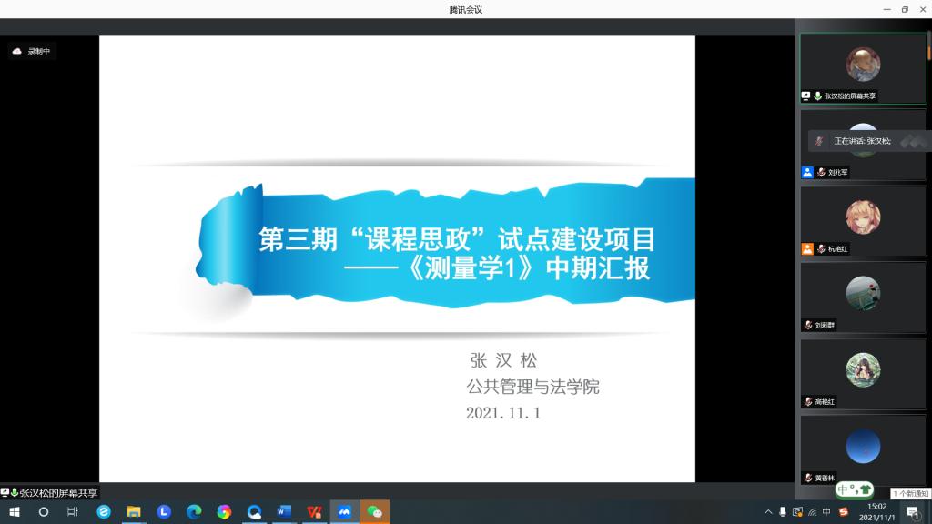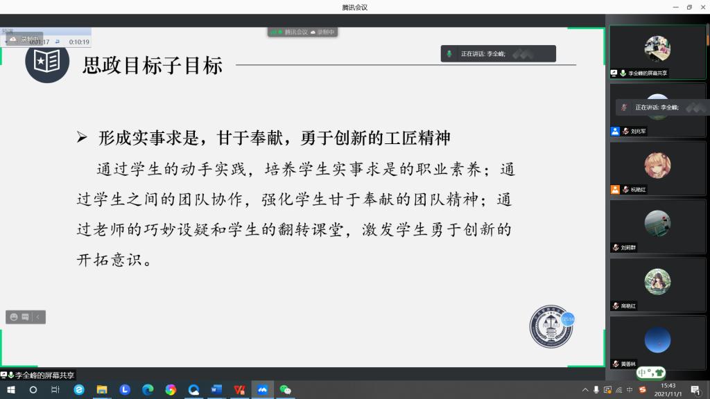 为贯彻落实我校课程思政建设工作部署,持续推动我院课程思政建设走深走实,充分展现课程思政建设阶段成效,不断强化课程思政在人才培养中的重要作用,11月1日13点30分,william威廉中文专门召开课程思政建设项目线上交流会。学院党委书记闫清波、院长杜国明,副书记马涛、副院长程镝、刘兆军和全体课程思政项目团队共同参加,部分教师参会观摩。会议由刘兆军主持。