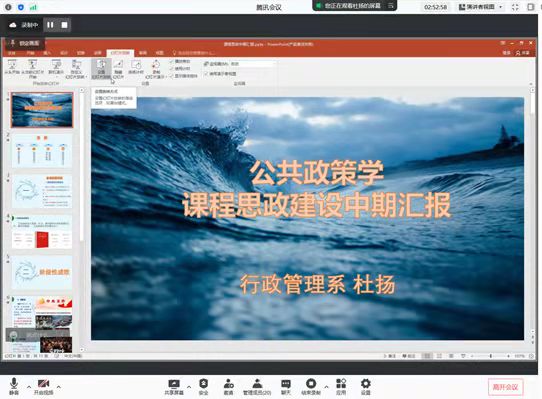 杜扬老师的《公共政策学》探索课程思政与宏观制度、微观热点的双向融合,加强学生对国家战略、改革发展与社会热点的领悟,并在优秀影片分析中坚定政治立场和爱国情怀。