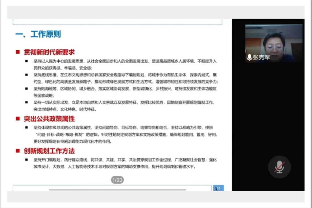 讲座上,张克军所长就我国空间规划的前世今生、新时代与国土空间规划、市级国土空间规划三个方面进行了系统的解读。