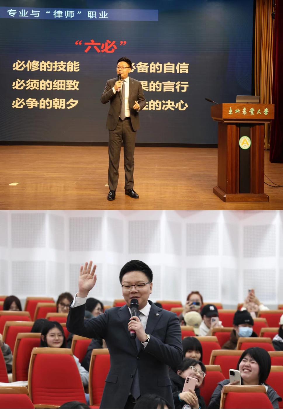 学院特邀东农法学08届优秀校友胡家润律师为法学本科生进行了一场以“律师是怎样‘炼’成的”为主题的分享会,胡家润从“这是一次怎样的分享”开始,讲述了自己与母校的渊源和珍贵经历。对于如何“炼”就成为一名合格的律师,分享了自己亲身经历的“安检口”“一支笔”“打印机”等多个故事,并阐释了律师职业发展中需要有“三头”“六必”和“四得”的“关键字”内涵。