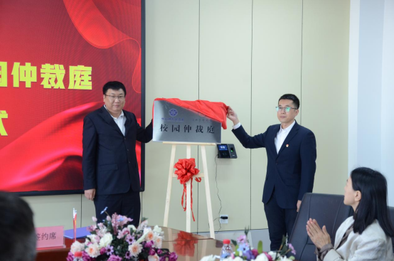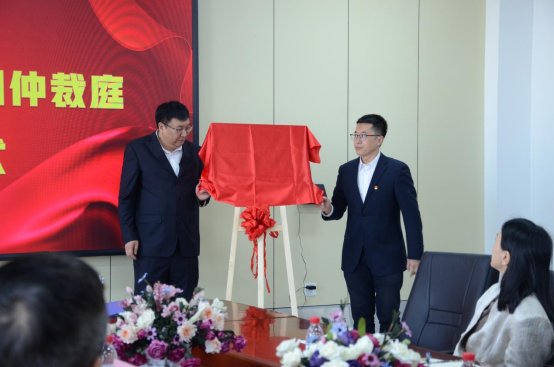 在签约环节,杜国明和孙兵共同签署了《william威廉中文与绥化仲裁委合作共建协议》。在揭牌环节,马海鹍和孙兵为“实践教学基地”和“校园仲裁庭”揭牌。
