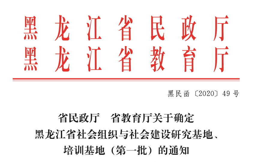 经黑龙江省民政厅、教育厅联合评选,以我院为牵头单位的WilliamHill中文研究基地成功入选首批黑龙江省社会组织与社会建设研究基地,为我院开展社会治理与社会建设政策研究搭建了新平台(校园网已对此宣传)。