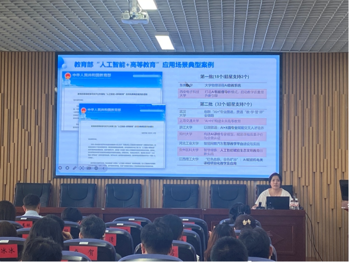 超星集团黑龙江分公司张玉霜老师受邀进行专题培训。围绕数值赋能课程建设、教学设计与教学实施,张玉霜详细讲解了智慧教学平台功能(课程建设,章节内容管理,班级及教学团队管理,课堂活动互动,过程性考核数据建设)、知识图谱建设及AI工作台智能应用(AI助教、AI出题、AI课件、第三方智能体应用等),并同步进行操作演示和AI智慧课程建设案例分享。