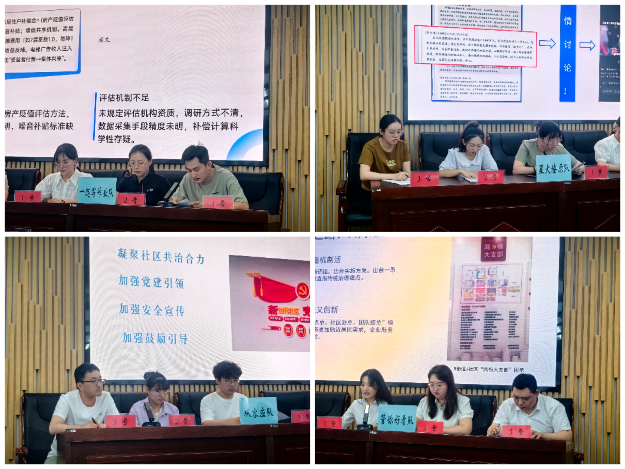 本次大赛聚焦社区治理、应急治理、社会保障等公共管理热点议题,经过前期严格的初赛选拔和文本盲审,共有4支队伍脱颖而出,晋级决赛。决赛采用“己方陈述—对方质疑—自由辩论—总结回应”四个环节展开,参赛选手围绕实际工作中面临的重大公共问题展开激烈交锋,充分展示了我院MPA研究生扎实的理论基础、敏锐的问题意识与卓越的实践能力。