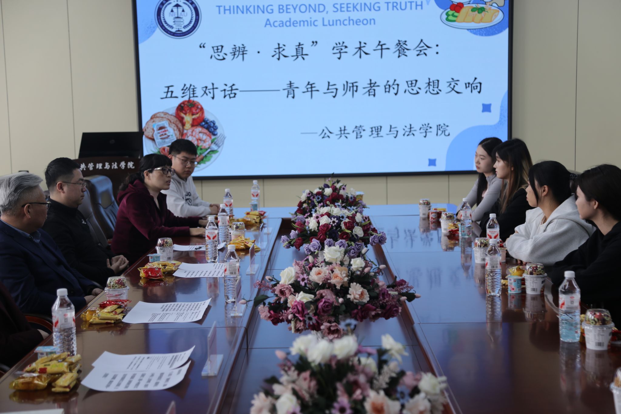 4月16日,我院“思辨・求真”学术午餐会在成栋楼1106室成功举办。学院党委书记刘世英、院长程镝,携各系主任、辅导员与学生代表围坐交流,聚焦学业成长、生涯规划、师生协同发展等核心议题深入探讨,共商青年学子成长成才路径。