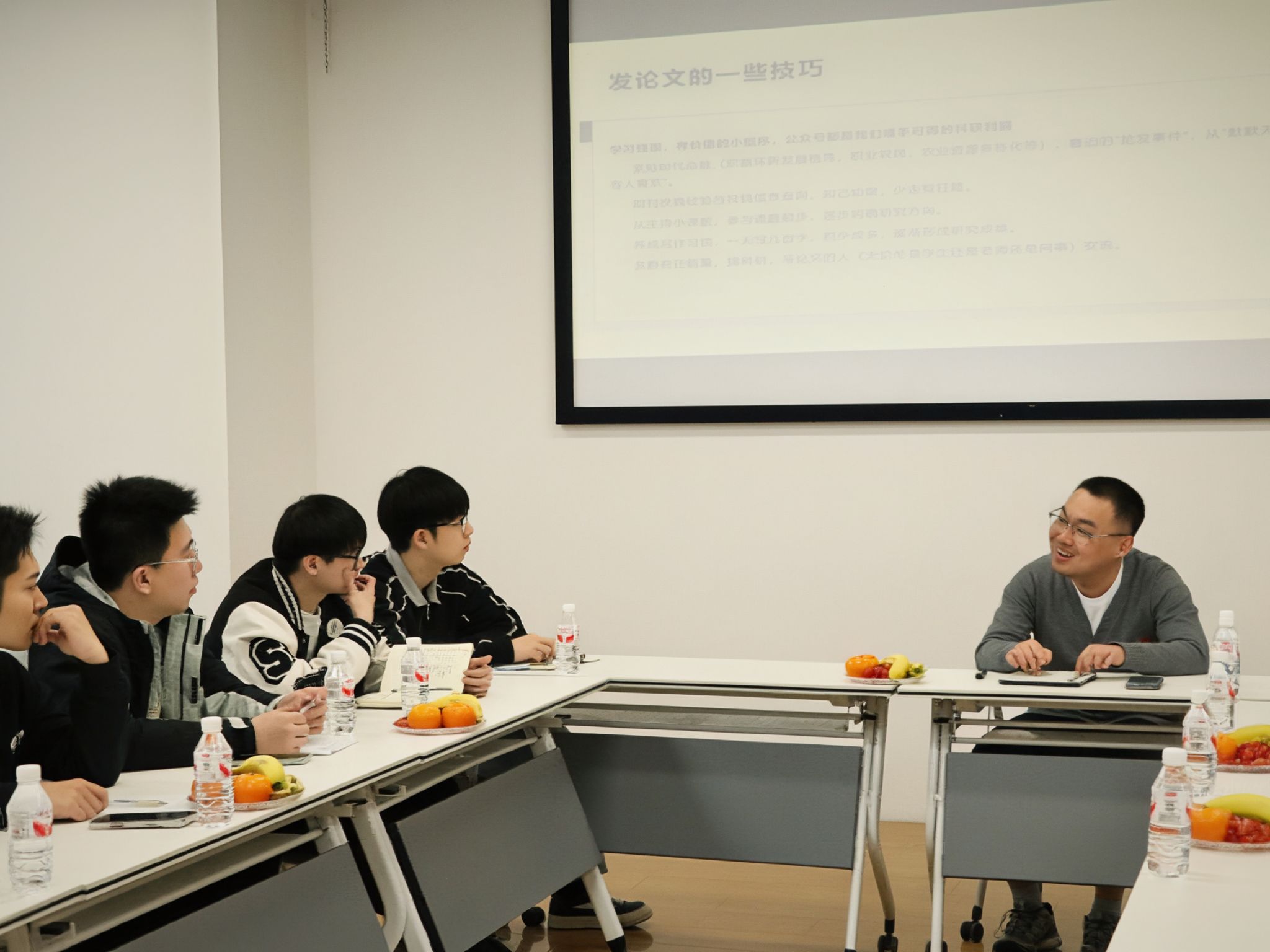 互动交流环节中,本次活动采用小范围、近距离、开放式座谈形式。同学们结合自身科研困惑,围绕选题方向、逻辑框架、期刊匹配等问题畅所欲言、主动提问。陈怀宇老师与大家面对面深入交流,逐一细致解答、针对性指导,师生畅聊无距,现场交流氛围融洽、高效务实,切实解决了大家在学术研究中的实际难题。