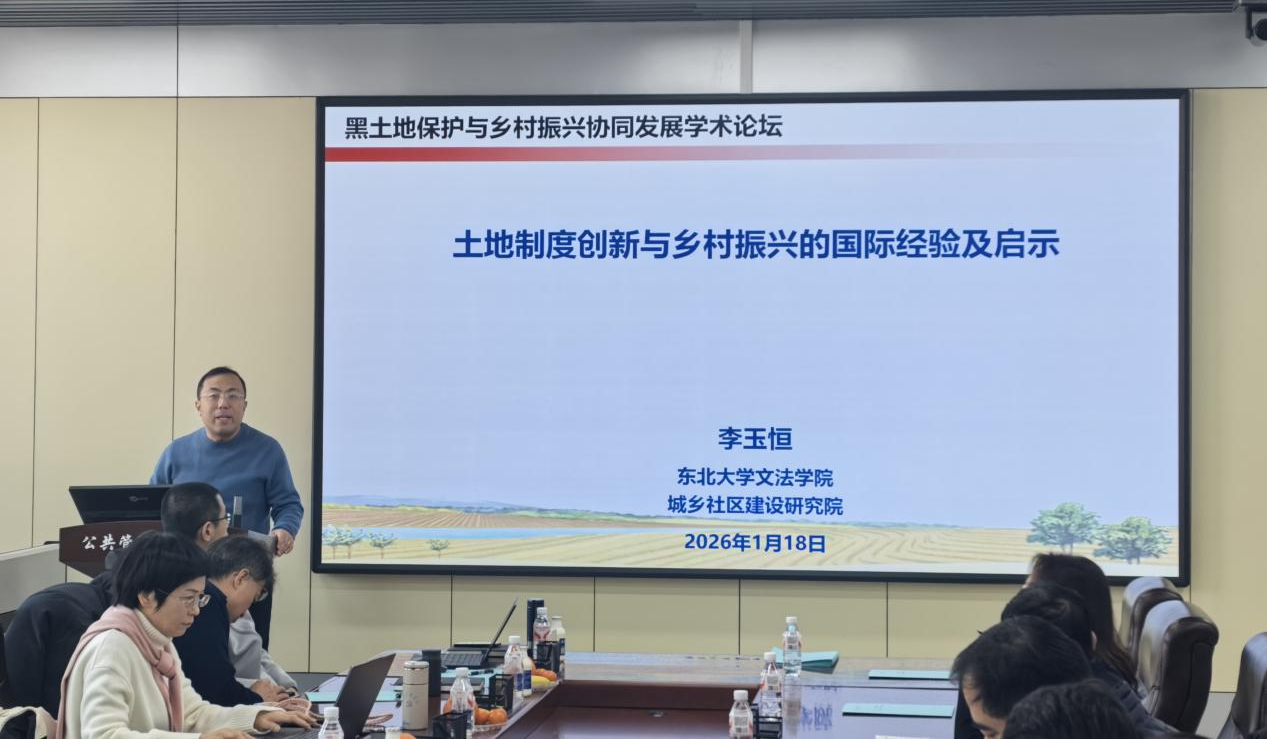 2026年1月18日,william威廉中文社稷讲坛暨黑土地保护与乡村振兴协调发展学术论坛在成栋楼1106会议室圆满举行。本次讲坛以“黑土地保护与乡村振兴协调发展”为核心主题,特邀多位领域内知名专家学者开展学术研讨与基金申报交流,包括宁夏大学地理科学与规划学院院长文琦教授、广州大学地理科学与遥感学院龚建周教授、东北大学文法学院李玉恒教授、南京师范大学地理科学学院乔伟锋教授、长安大学土地工程学院员学锋教授、华南农业大学公共管理学院邹利林教授、中国科学院南京地理与湖泊研究所高金龙研究员。学校教务处处长杜国明、学院院长程镝、副院长黄善林、学院土地资源管理学科骨干教师和部分研究生参会。会议由黄善林主持。
