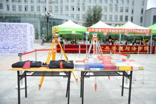 学院在迎新现场展出了测量仪器、法律专业书籍、法官袍、律师袍等各类专业特色展品,方便学生了解专业特色。为简化报到流程,为全院新生准备了印有专业、姓名的入学材料袋,内附学生校园卡、日程表、校历、防骗指南及签字笔、明信片等入学纪念品,学生在线上报到完成后领取入学材料袋即可完成报到流程。