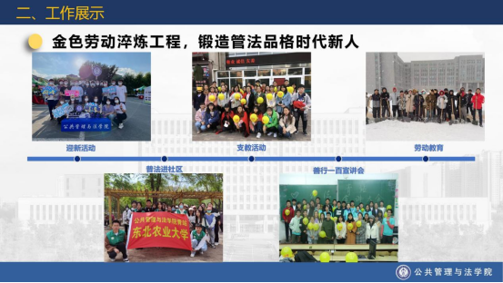 学院精准把握新时代劳动教育新特征,建立“三横两纵”矩阵式劳动育人模式,“以劳立德”,聚焦劳动教育校园文化;“以劳启智”,创新融合实践育人;“以劳树人”,打造志愿服务品牌项目,培养学生树立科学的思维习惯和社会责任感。