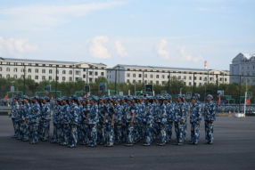 接着教官带领新生们进行队列训练,三百位冉冉升起的新星身着迷彩板正端庄,像挺拔的青松扎根于这片土地。“一二三四,一二三四”,铿锵的口号在排球场上一遍遍回响,从额角慢慢汇聚的汗珠顺着少年稚嫩的脸庞流下,千百次的定点挥臂,遒劲有力的步伐,齐步、踏步、下蹲、停止间转法……一次次练习,一次次纠错,靠脚声逐渐趋向一致,少年人不惧困难,意志坚定,将吃苦耐劳、艰苦奋斗的精神体现的淋漓尽致。