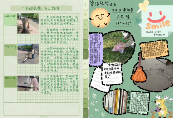 我院社联开展的“劳动筑校,主人担当”劳动实践手账收集活动也得到了学生们的积极响应。学生们通过手账的形式,记录下自己在劳动实践中的所见所闻、所思所感。有的手账记录了农耕实践的全过程,展现了劳动的艰辛与收获的喜悦;有的手账描绘了校园美化活动的场景,表达了对校园的热爱之情;有的手账分享了劳动技能竞赛中的心得和体会,体现了对劳动的尊重和热爱。这些手账作品不仅是学生们劳动实践的珍贵记录,更是他们弘扬劳动精神、展现责任担当的生动体现。