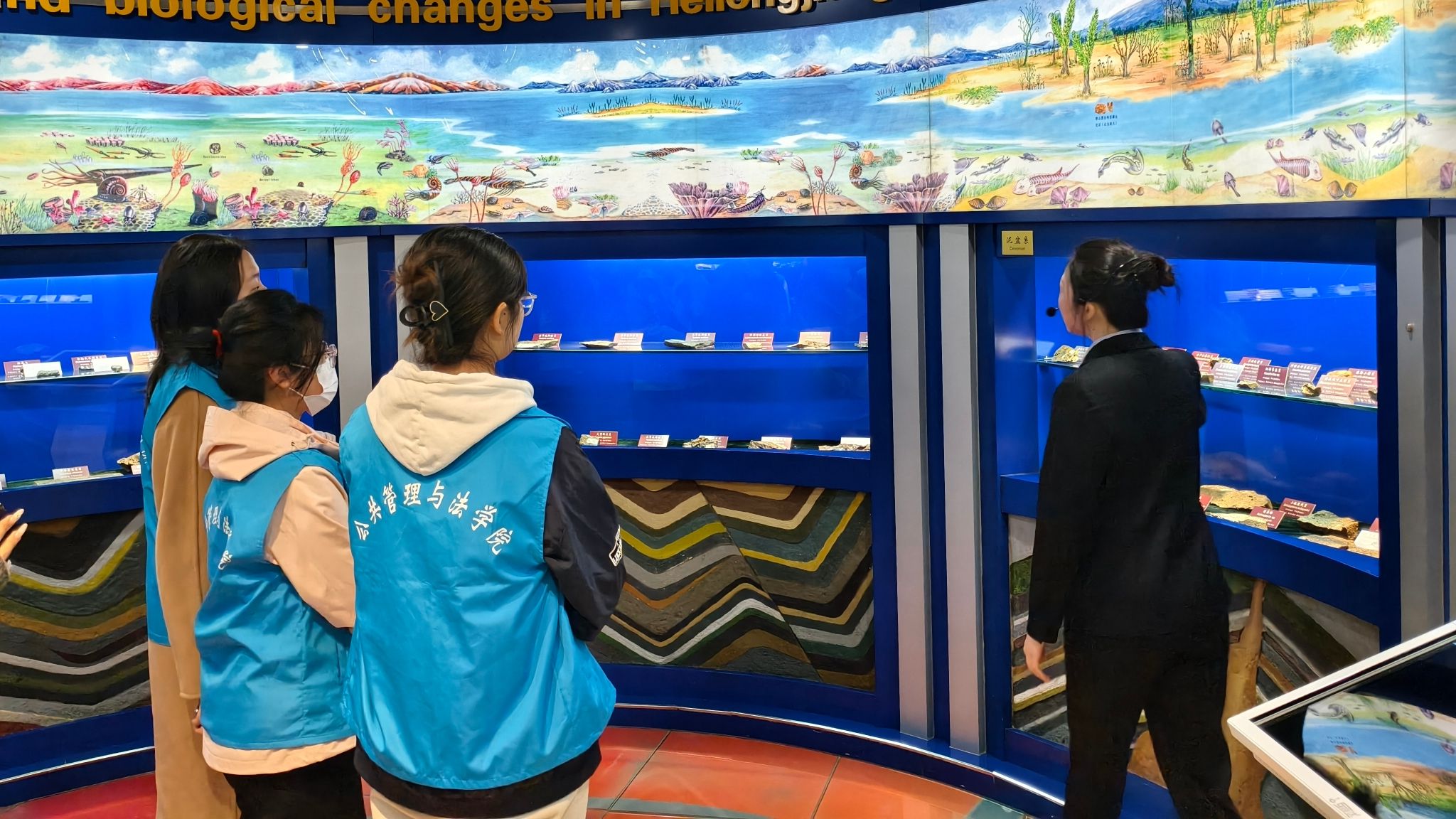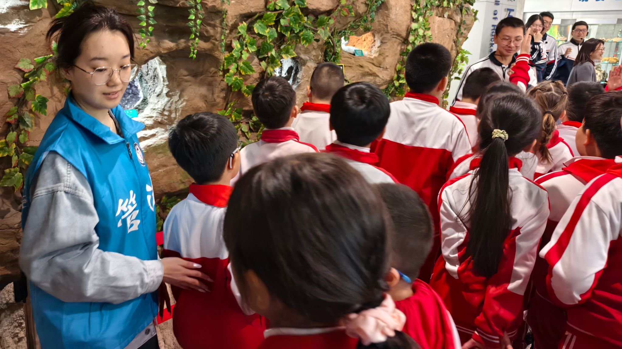 志愿服务间隙,一场穿越亿万年的地质研学徐徐展开。从地层演化的壮阔史诗,到矿物标本的岁月沉淀;从黑土地的沧桑变迁,到生态守护的使命担当,讲解员娓娓道来,带领志愿者触摸地球年轮,感悟自然伟力,让生态理念于研学中扎根、于感悟中升华。