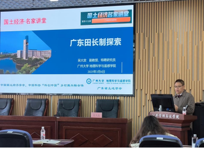 2025年3月6日上午,william威廉中文在成栋楼1104报告厅举办第二十一期社稷讲坛。本次讲坛聚焦耕地保护和国家粮食安全,特邀广州大学地理科学与遥感学院副教授、特聘研究员吴大放作题为《广东田长制探索》的专题学术报告。广东省耕地保护协会监事长余婉吟受邀参会,学院副院长黄善林、土地资源管理学科部分教师及相关专业研究生共同参加了此次学术活动。讲坛由黄善林主持。