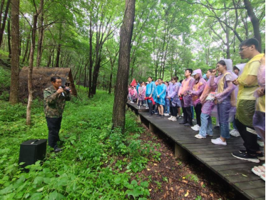 团建活动结束后,学生们经过蜿蜒曲折的盘山路,来到抗联密营遗迹。讲解员坚持不打雨伞为学生们讲解,讲到关键处,激昂慷慨,饱含真情。东北抗联精神激励着一代又一代的青年人,让大家铭记抗联历史,赓续红色血脉,凝聚奋进力量。