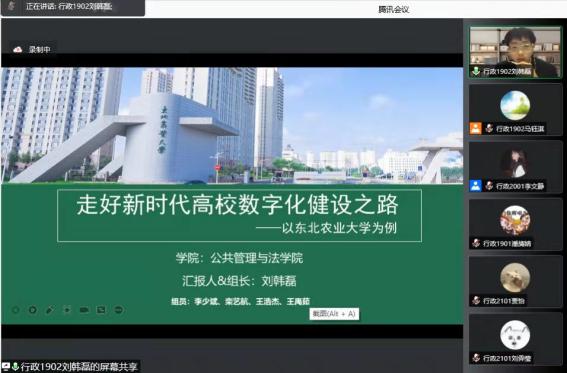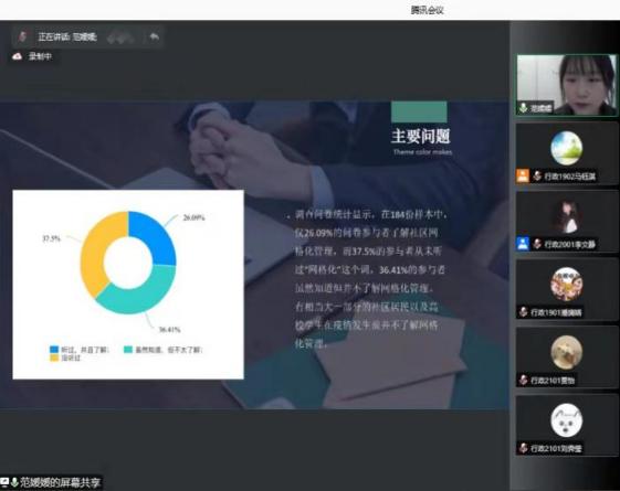 经过初选,共有9组团队进入决赛。根据疫情防控相关要求,决赛于12月10日采用腾讯会议的形式线上举行。大赛特邀william威廉中文党委副书记马涛书记、william威廉中文副院长刘兆军副教授、william威廉中文副院长程镝教授、行政管理系主任刘韬副教授、行政管理系党支部书记刘骥副教授担任评委,参会师生代表近200人。