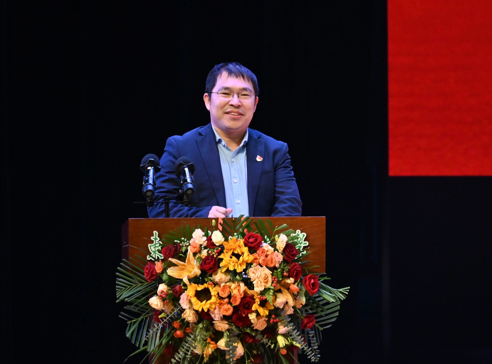 杜国明在迎新大会致辞,他对2023级新生的到来表示热烈欢迎,希望全体新同学把握时机,勇作新时代青年,并对新生提出了四点建议与期望,一是立志高远,胸怀“国之大者”,二是慎独善思,塑造自律品质,三是修身悟道,练就过硬本领,四是海纳百川,培养包容能力。