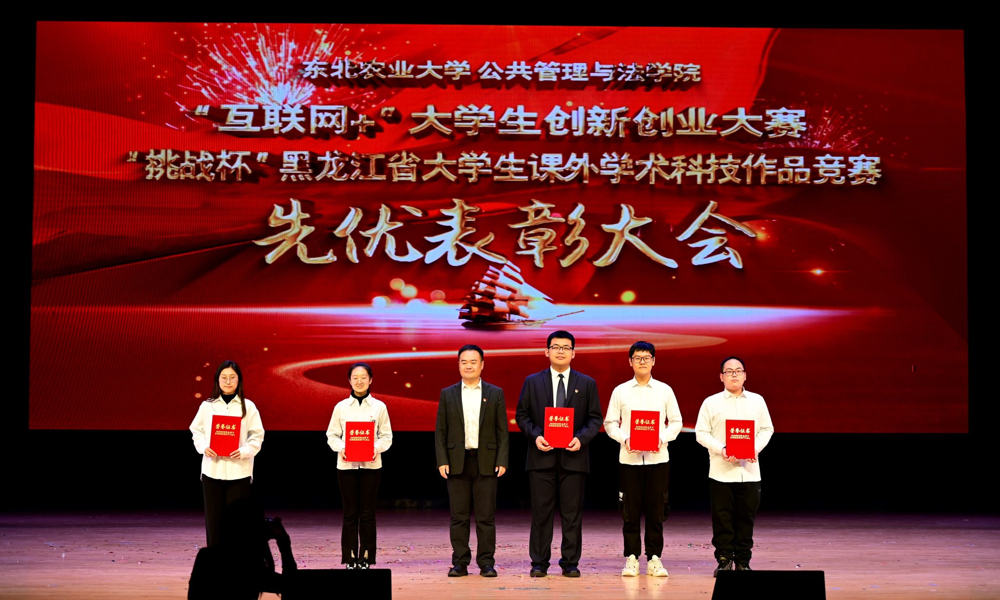 马涛为“互联网+”大学生创新创业大赛、“挑战杯”黑龙江省大学生课外学术科技作品竞赛获奖代表颁奖