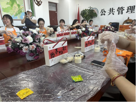 为庆祝第四十个教师节公共管理与法学院为全体教职工举办冰皮月饼创意制作活动。大家分工合作、齐心协力,亲手制作月饼,寓意“圆圆满满”,在欢声笑语中,本次冰皮月饼创意制作活动圆满结束。